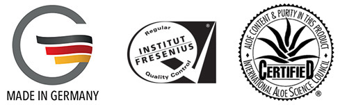 Този продукт носи печата на SGS INSTITUT FRESENIUS – един от най-трудните за получаване сертификати за качество в света, който гарантира чистота на всяка партида. Също така е сертифициран от IASC (Международен научен съвет за алое).